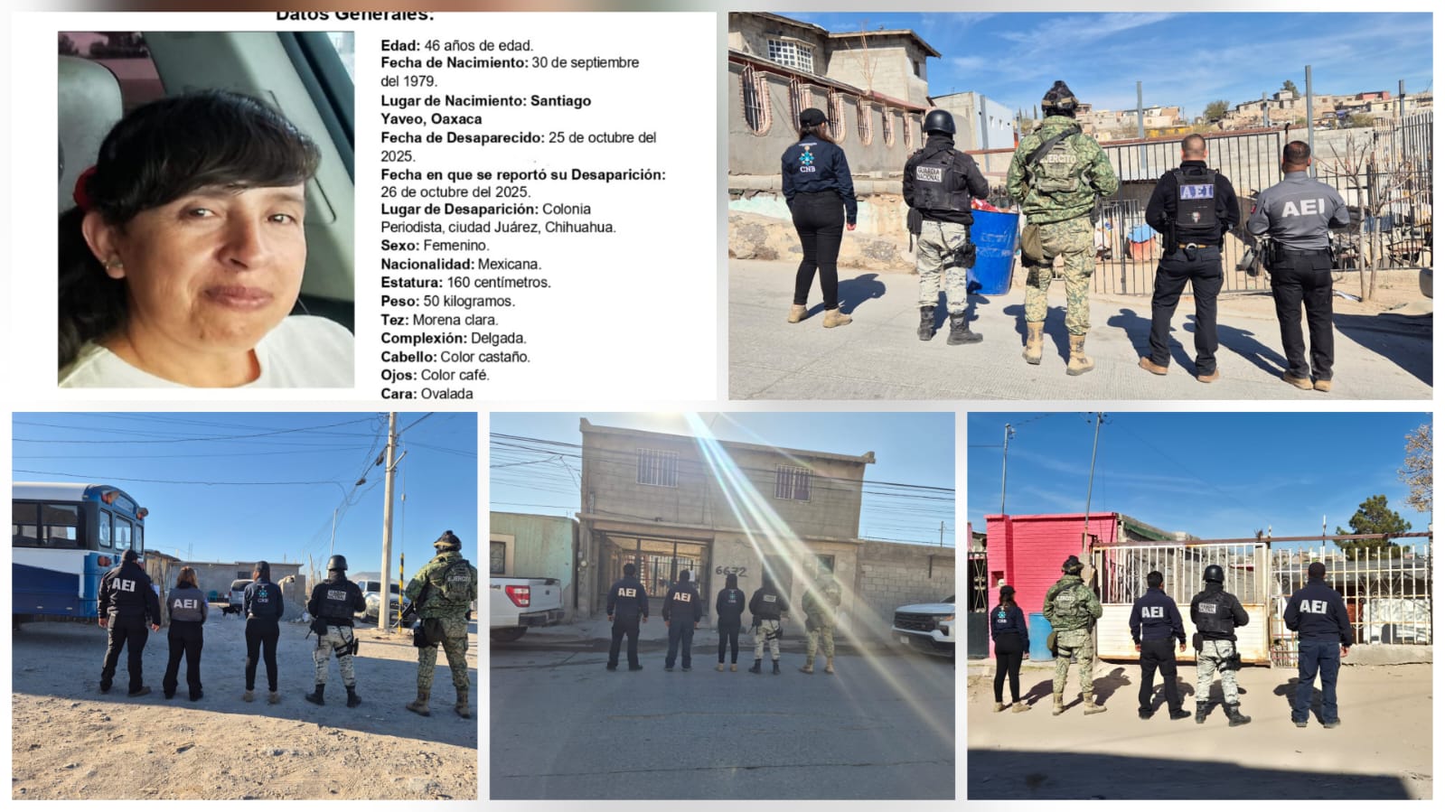 Ciudad Juárez, Chih., a 22 de enero de 2026.- Como parte de los trabajos de investigación que permitan dar con el paradero de Sofía Hernández Blanco, reportada como desaparecida el 25 de octubre del año 2025 en ciudad Juárez, la Fiscalía Especializada en Atención a Mujeres Víctimas del Delito por Razón de Género y a la Familia, cateó cuatro viviendas.