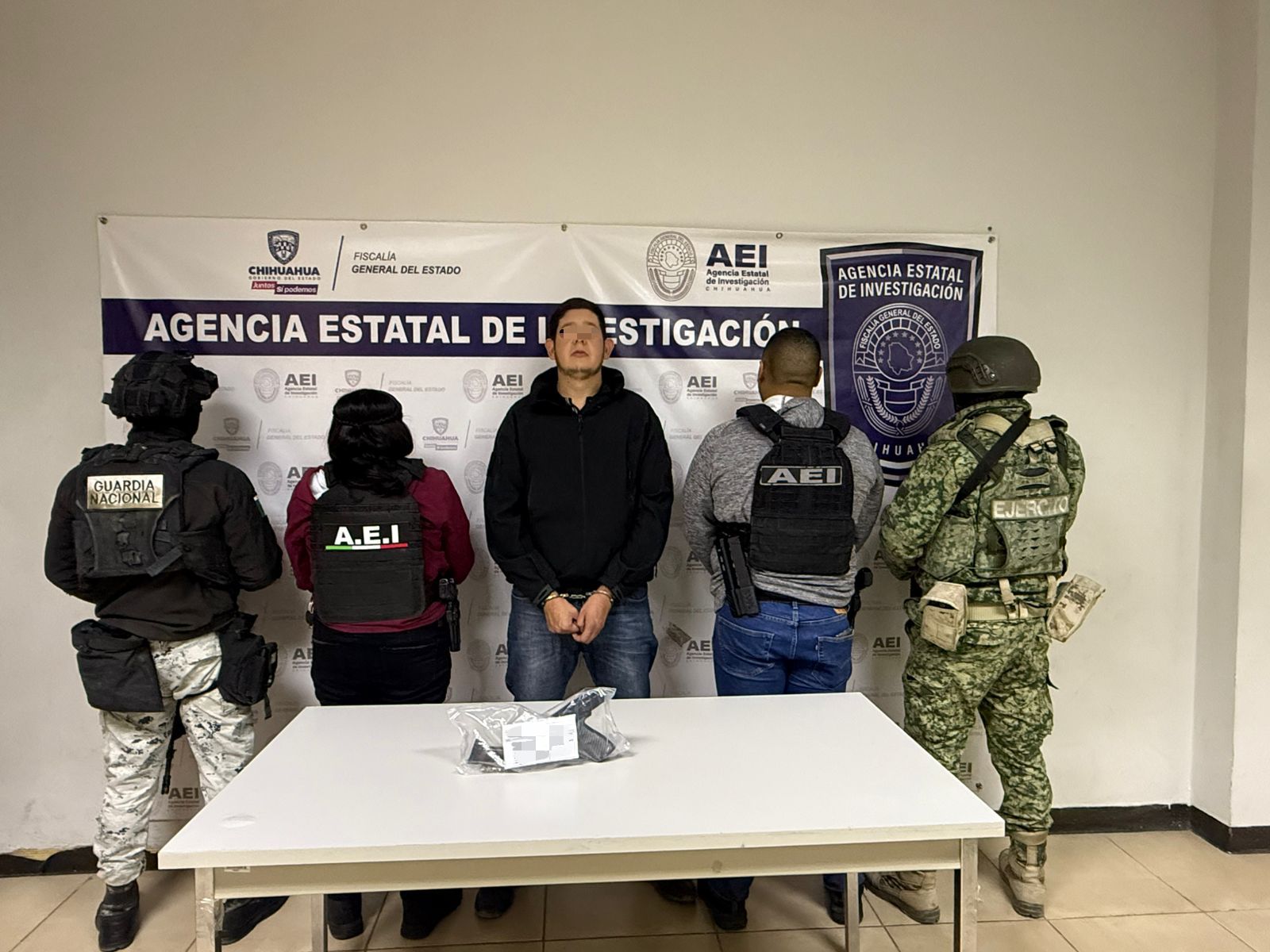Por medio de los operativos coordinados con elementos de la Guardia Nacional y del Ejército Mexicano, se detuvo a la mencionada persona de 28 años de edad, asegurándole una pistola abastecida con siete cartuchos útiles calibre .45 milímetros.