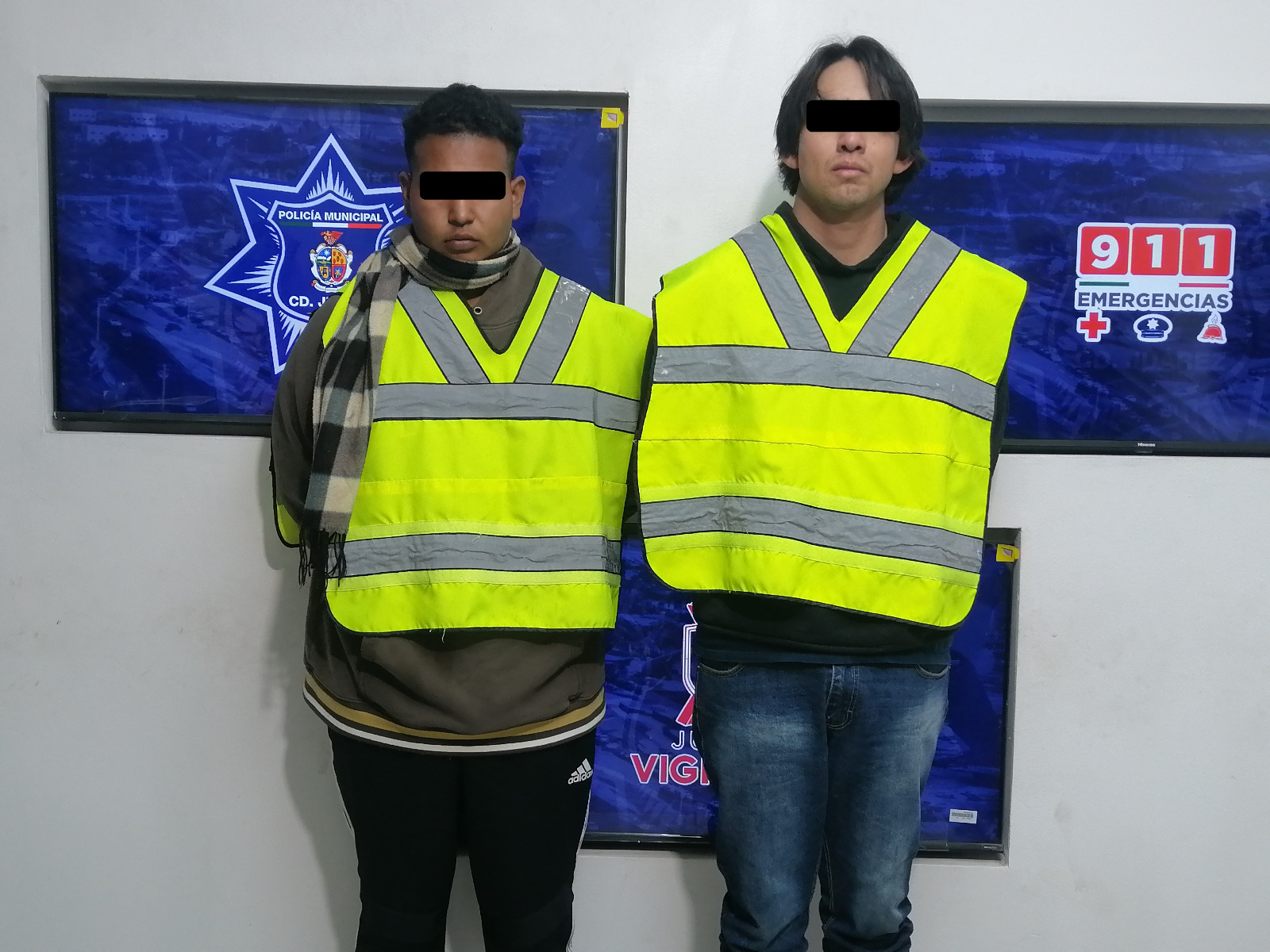 A 25 de enero de 2026.- Elementos de la Secretaría de Seguridad Pública Municipal, adscritos a la Estación de Policía del Distrito Sur, arrestaron a Walter Alfredo A. D. y José G. R., por su presunta responsabilidad en la comisión del delito de robo a casa comercial con lujo de violencia.