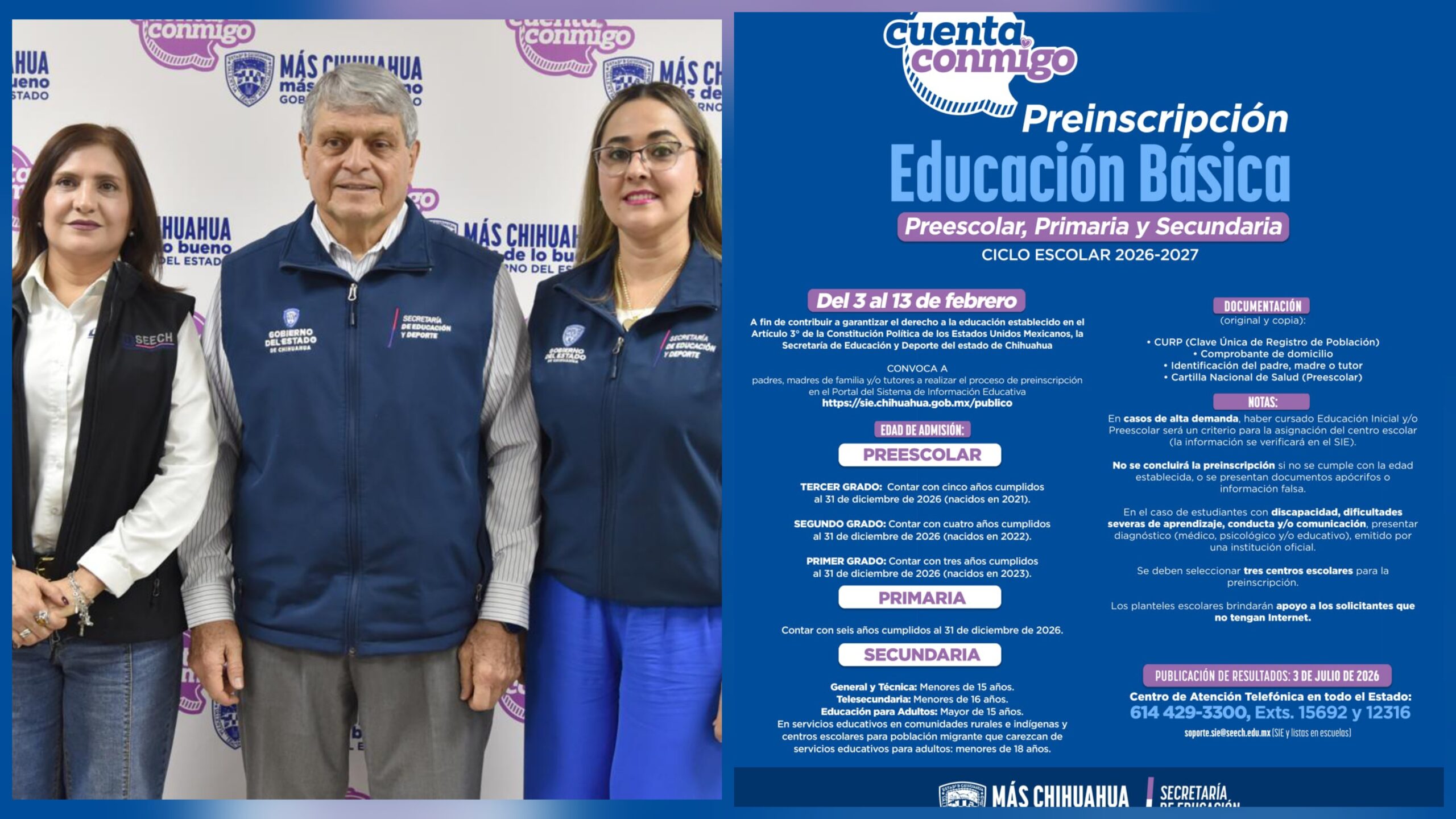 La Secretaría de Educación y Deporte (SEyD) informó que del 3 al 13 de febrero, se efectuará el proceso de preinscripción de estudiantes de nuevo ingreso a los niveles Inicial, Preescolar, Primaria y Secundaria, para el ciclo escolar 2026-2027.