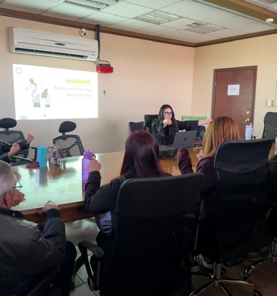 Martes 20 de Enero del 2026.- Personal del área de Recursos Humanos del Municipio recibió el taller «Resolución Pacífica de Conflictos», curso que les dio la Dirección de Derechos Humanos, indicó el titular de esta dependenca, Santiago Gonzáles Reyes. “Fue con el objetivo de fortalecer las habilidades de las personas participantes para que puedan identificar, comprender y manejar los conflictos…
