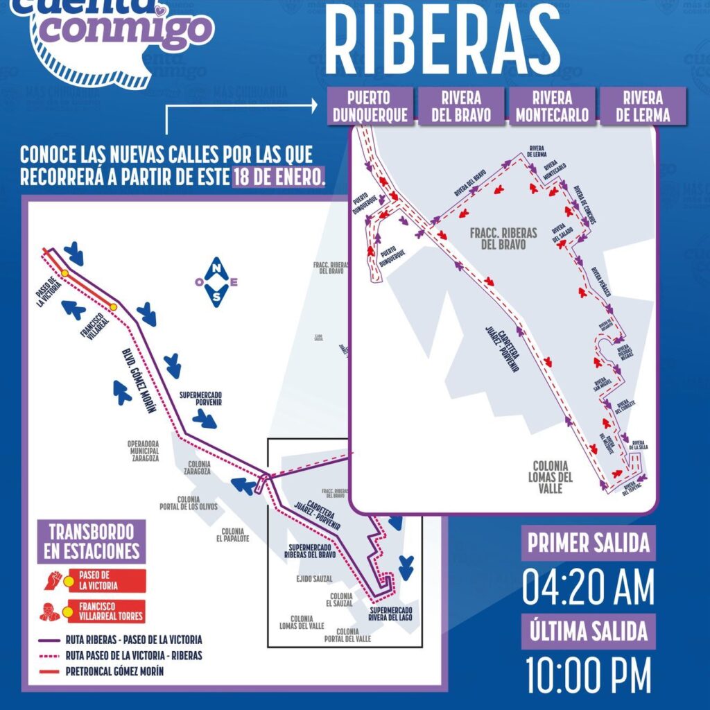 La Secretaría General de Gobierno, a través de la Subsecretaría de Transporte, informó que a partir de este domingo 18 de enero se modificará el recorrido de la ruta Riberas del Bravo del sistema de transporte JuárezBus, con el fin de beneficiar a un mayor número de habitantes. La ruta además de cubrir su trayecto habitual, circulará por las calles…