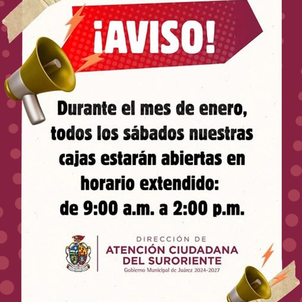 Viernes 16 de Enero del 2026.- La Coordinación de Atención Ciudadana del Suroriente, ubicada en avenida Del Valle número 156 de la colonia Zaragoza, amplió sus días de servicio a la comunidad durante los sábados de enero, en horario de 9:00 de la mañana a las 2:00 de la tarde. El titular de la dependencia, Víctor Valencia Carrasco, comentó que…