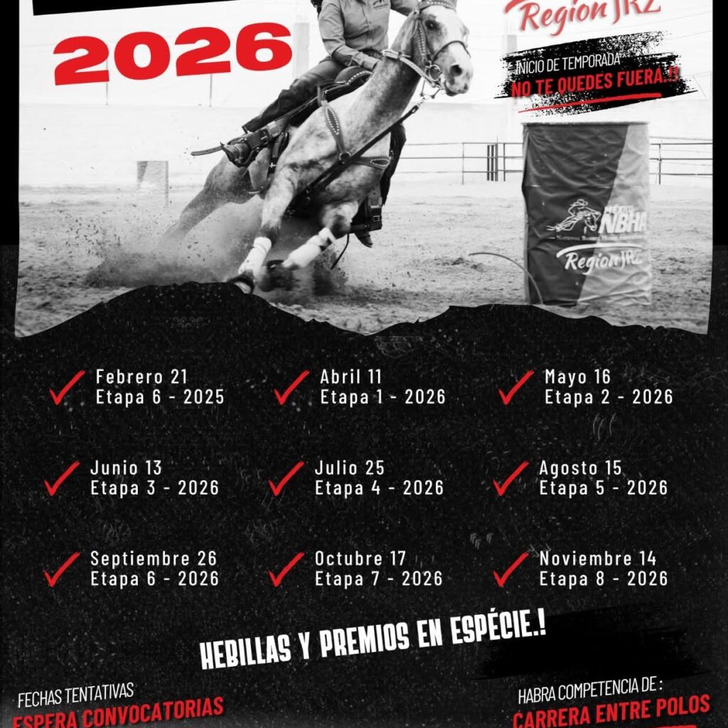 Jueves 8 de Enero del 2026.- La Liga Municipal de Rodeo de Ciudad Juárez, la Asociación Estatal de Rodeo de Chihuahua y el Comité Juvenil de Rodeo dieron a conocer el calendario de actividades a realizarse para este año 2026. Ciudad Juárez tiene la segunda etapa para el Selectivo Juvenil Estatal CONADE 2026, a efectuarse el 21 de febrero; la…