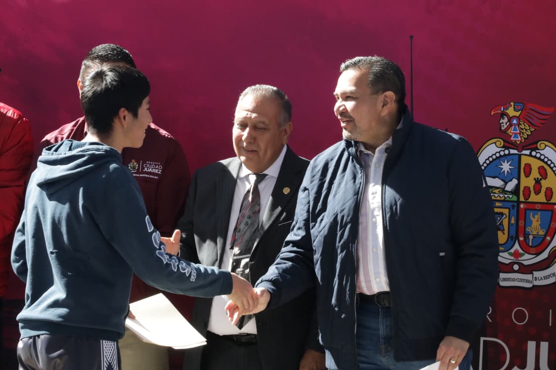 En la entrega estuvieron el presidente de la sociedad de padres de familia, Jua Pablo Carrasco; Vicente de Jesús Nájera, supervisor de zona; Albar Bojórquez, secretario general del área 256 sección 8; Hermes Trejo de la Cruz, supervisor del turno matutino; Rene García, subdirector del turno vespertino; Juan Pablo Carrasco, director del plantel; Ismael Rueda, coordinador de Infraestructura del Municipio; Guillermo Alvídrez, director de Educación; Sebastián Aguilera, director de Participación Ciudadana; Cesar Tapia, director de Servicios Públicos y Jorge Marcial Bueno Quiroz, regidor del Ayuntamiento.
