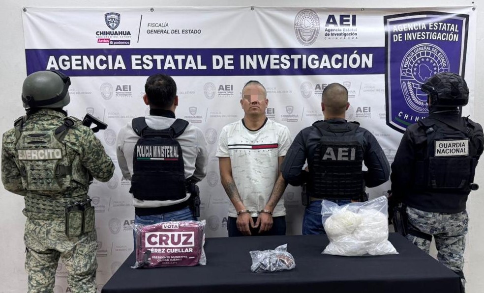 Ciudad Juárez, Chih., a 07 de febrero de 2026.- Elementos de la Agencia Estatal de Investigación adscritos al Centro de Operaciones Estratégica de la Fiscalía de Distrito Zona Norte, detuvieron al masculino identificado como Adrián Rafael C. R., por delitos de contra la salud y posesión ilegal de arma de fuego, en Ciudad Juárez. La detención de la citada persona,…