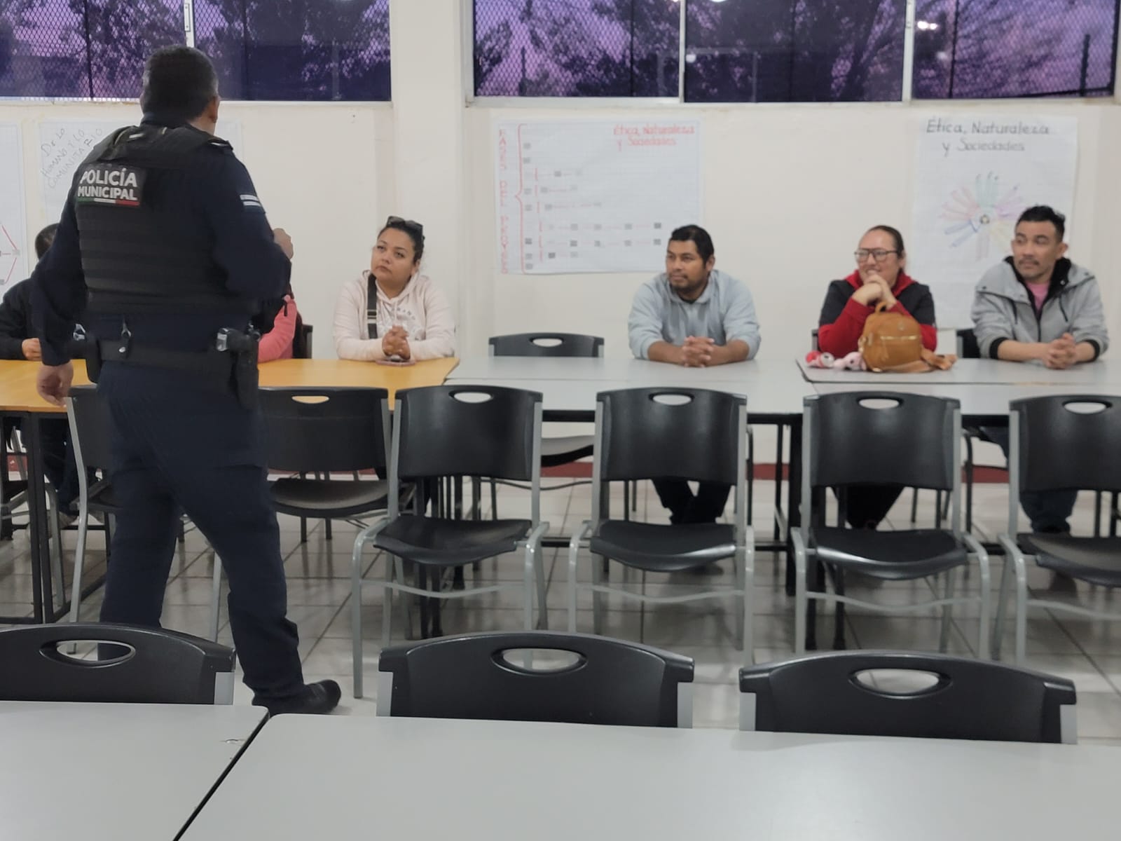 A 10 de febrero de 2026.- Elementos del Grupo 16, adscritos a la Dirección de Prevención Social de la Secretaría de Seguridad Pública Municipal, impartieron una plática preventiva dirigida a padres de familia de la Escuela Secundaria Federal 19, con el objetivo de concientizar sobre la “Omisión de Cuidados” y sus repercusiones en el desarrollo integral de los estudiantes.