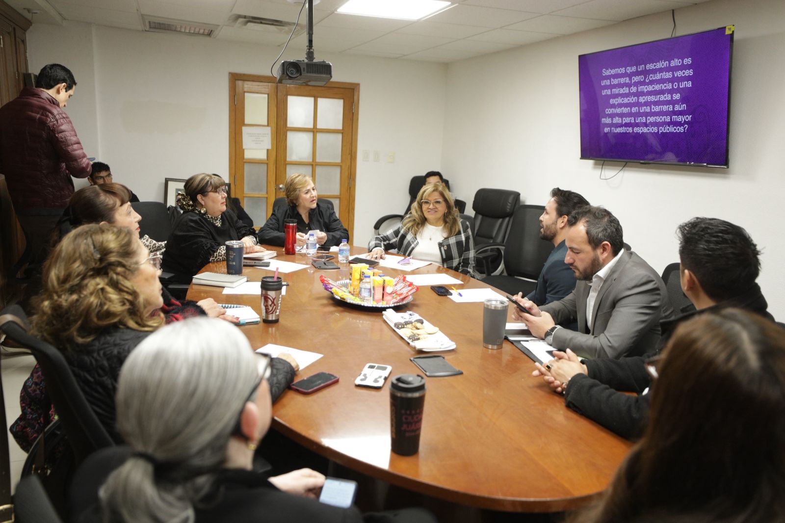 Jueves 19 de Febrero del 2026.- Regidoras de la Comisión Edilicia de Atención a las Personas Mayores se reunieron con personal del Sistema para el Desarrollo Integral de la Familia del Municipio de Juárez (DIF), así como con integrantes del Consejo Consultivo Municipal, donde se presentó el programa piloto denominado “Mecanismo de Atención y Trato Digno a Personas Mayores”.
