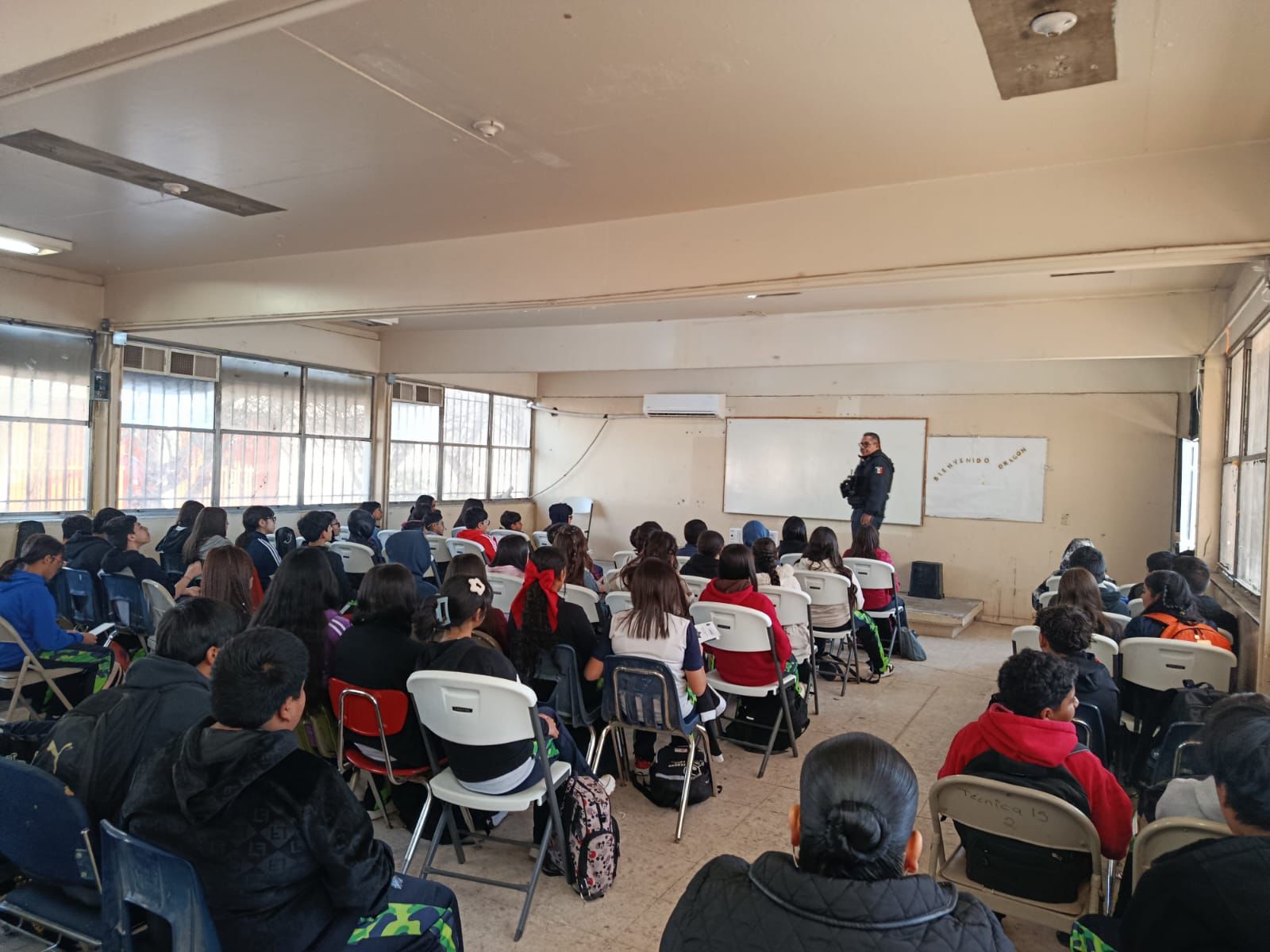 A 19 de febrero de 2026.-Como parte de las acciones coordinadas en la «Mesa de Prevención de Adicciones y Violencia Todos Juntos por Chihuahua», la Secretaría de Seguridad Pública Municipal a través de la Dirección de Prevención Social, llevó a cabo la implementación de estrategias preventivas con el alumnado de la Secundaria Técnica 15.