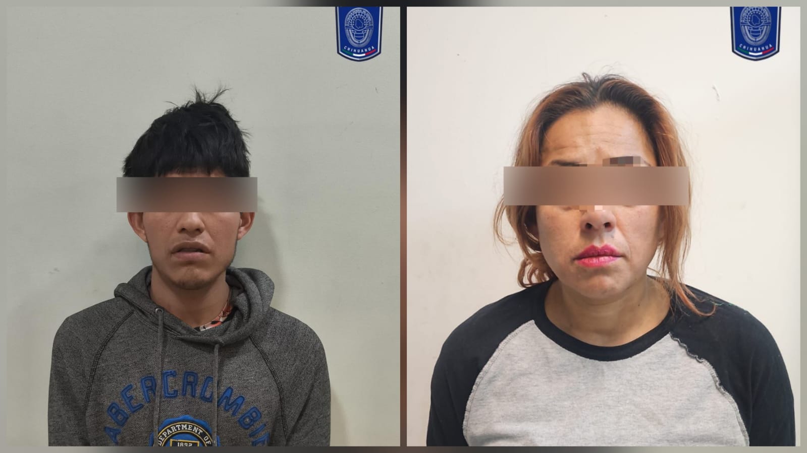 Ciudad Juárez, Chih., a 20 de febrero de 2026.- Elementos de la Agencia Estatal de Investigación adscritos al Centro de Operaciones Estratégicas, detuvieron en flagrancia a quienes se identificaron como Irene Bethel G. B., y Brandon L. M., por posesión de dos bolsas que contenían una hierba seca y olorosa con las características de la mariguana.