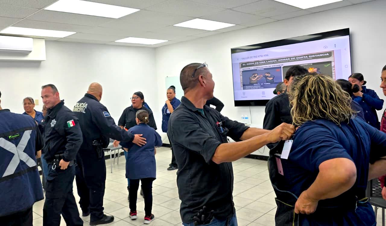 Durante la sesión, los elementos municipales compartieron técnicas clave de autoprotección y recomendaciones prácticas para actuar ante posibles situaciones de riesgo, tanto en el entorno laboral como en la vida cotidiana, proporcionando herramientas que pueden aplicar en beneficio propio, de sus familias y de las personas más cercanas.