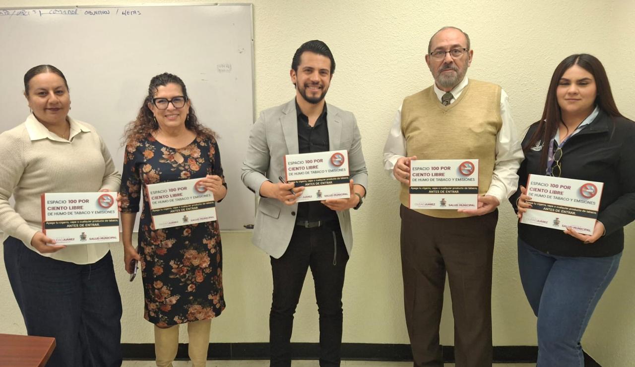 Lunes 23 de Febrero del 2026.- Personal de la Dirección de Salud Municipal, encabezada por Daphne Santana Fernández, tuvo una reunión de trabajo con directivos de la Universidad Autónoma de Ciudad Juárez (UACJ), a través del Instituto de Ciencias Biomédicas (ICB), con el objetivo de dar seguimiento al proceso de certificación del campus como espacio 100 por ciento libre de humo de tabaco y emisiones.
