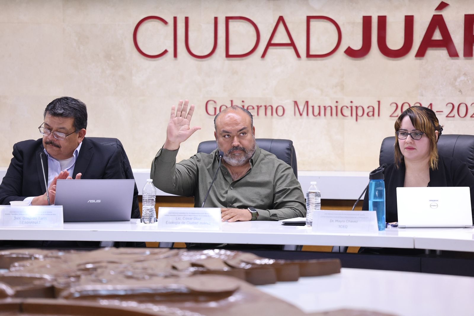 Martes 3 de Marzo del 2026.- El efecto de los movimientos comerciales en el medio ambiente y la calidad del aire en la región, son algunos de los temas que este día se abordan en la reunión del Comité Consultivo Conjunto (CCCJAC) para la Mejora de la Calidad del Aire en Ciudad Juárez, El Paso, Texas y el Condado de Doña Ana, Nuevo México, evento que se lleva a cabo en la sala Francisco I. Madero, de la Unidad Administrativa Lic. Benito Juárez (presidencia municipal).