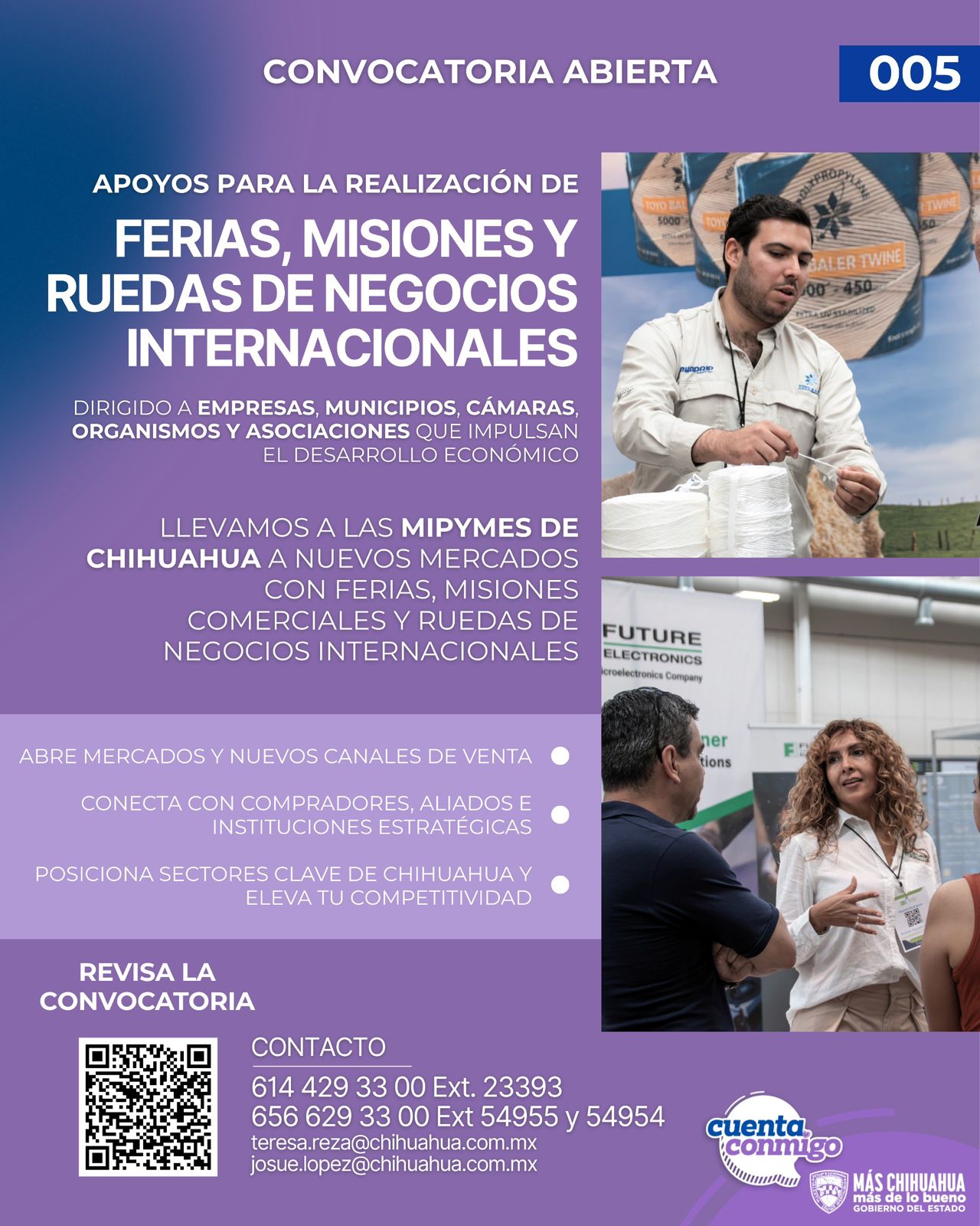 Se trata de una estrategia orientada a fortalecer la promoción de la oferta exportable de Chihuahua en mercados internacionales, así como a impulsar el crecimiento económico, la vinculación empresarial y la apertura de nuevas oportunidades comerciales en el extranjero.
