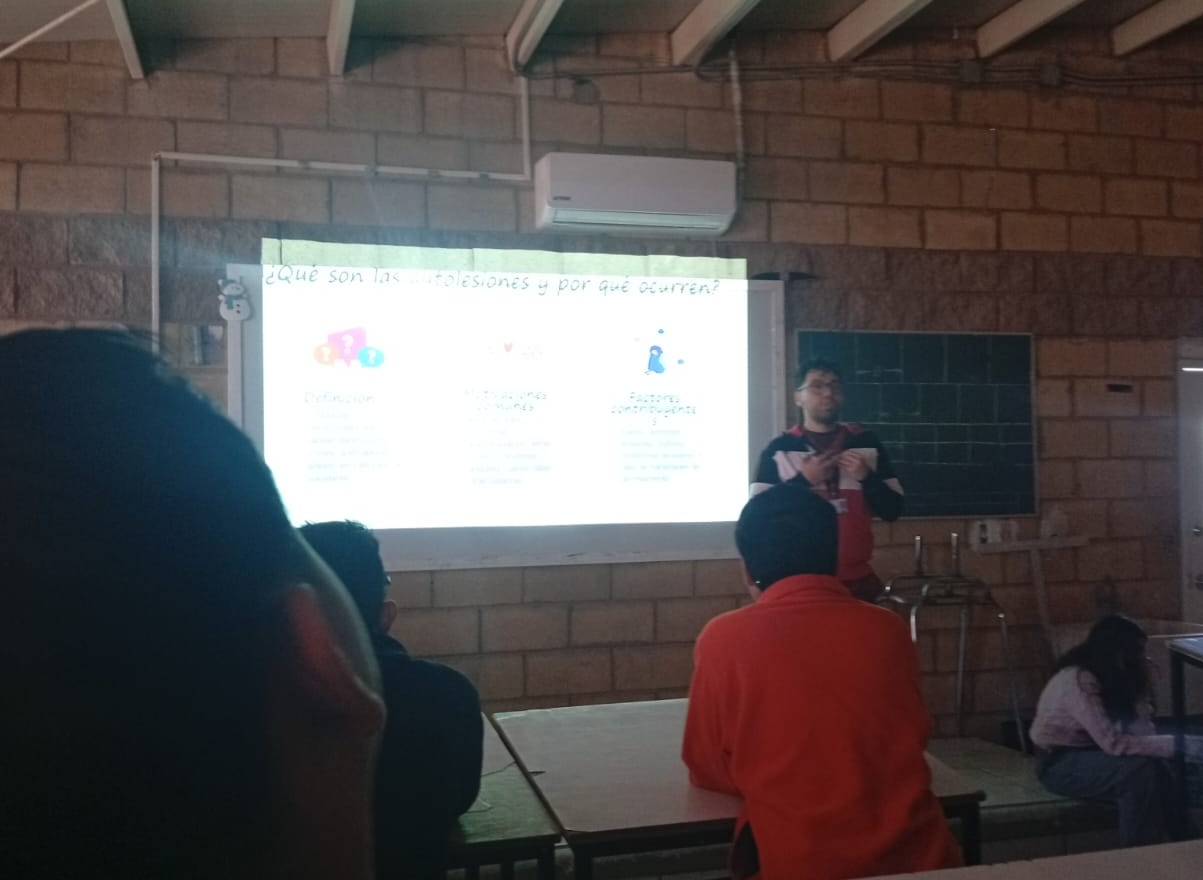 Durante la plática también se informó a las y los estudiantes sobre algunas de las formas más comunes de autolesión, entre ellas los golpes, cortes, quemaduras o rasguños en extremidades y abdomen, así como la introducción de objetos bajo la piel.