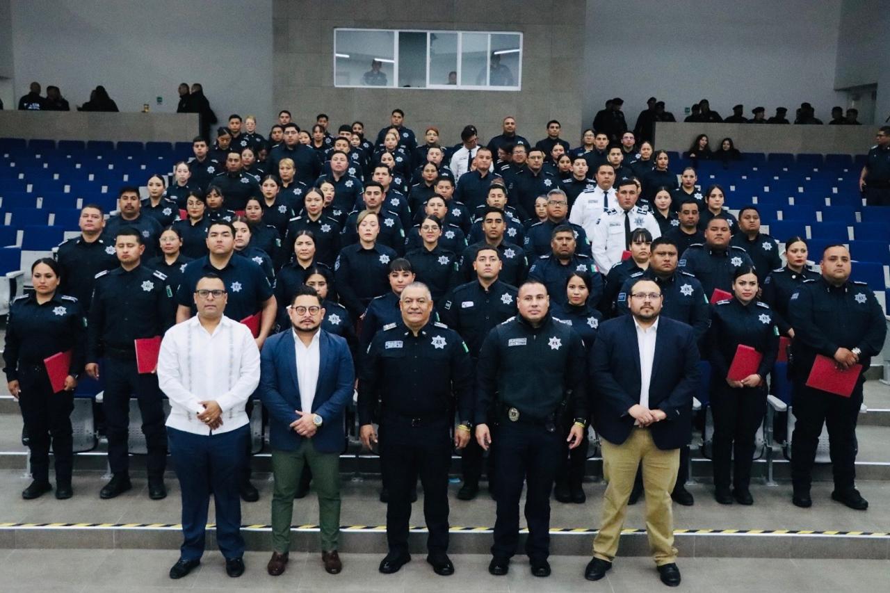 A 10 de marzo de 2026.- La Secretaría de Seguridad Pública Municipal llevó a cabo la entrega de certificados de nivel preparatoria a 98 elementos de la corporación, quienes concluyeron satisfactoriamente sus estudios a través del Centro Educativo Aula 286, como parte de las acciones encaminadas a fortalecer la profesionalización policial.