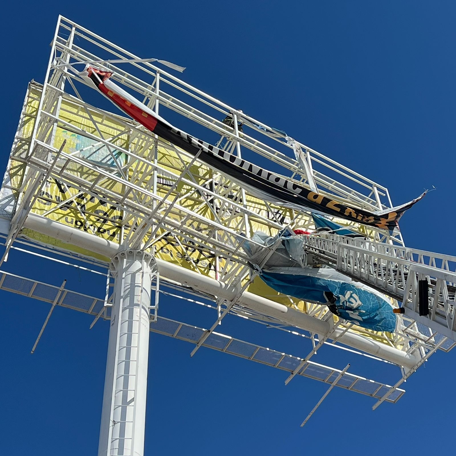 Retiran lona en riesgo de caer de anuncio espectacular en Infonavit Casas Grandes