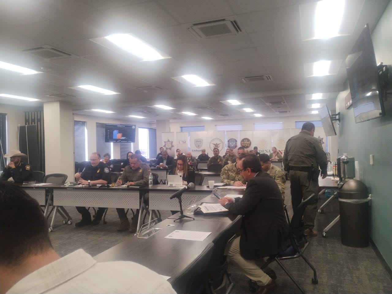 A 13 de marzo del 2026.- La Secretaría de Seguridad Pública Municipal participó en la Reunión Binacional del Protocolo de Violencia Fronteriza a donde acuden titulares y representantes de las diferentes corporaciones y agencias de seguridad de los tres niveles de gobierno tanto de esta ciudad como del vecino país.