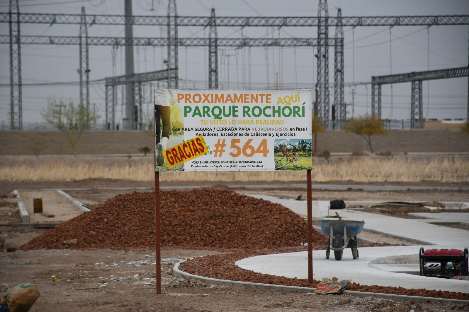 Viernes 13 de Marzo del 2026.- La Dirección General de Obras Públicas trabaja en la construcción del parque Rochori, proyecto que contempla un diseño sensorial e inclusivo, al ser propuesto por los vecinos del fraccionamiento La Sarzana a través del programa de Presupuesto Participativo.