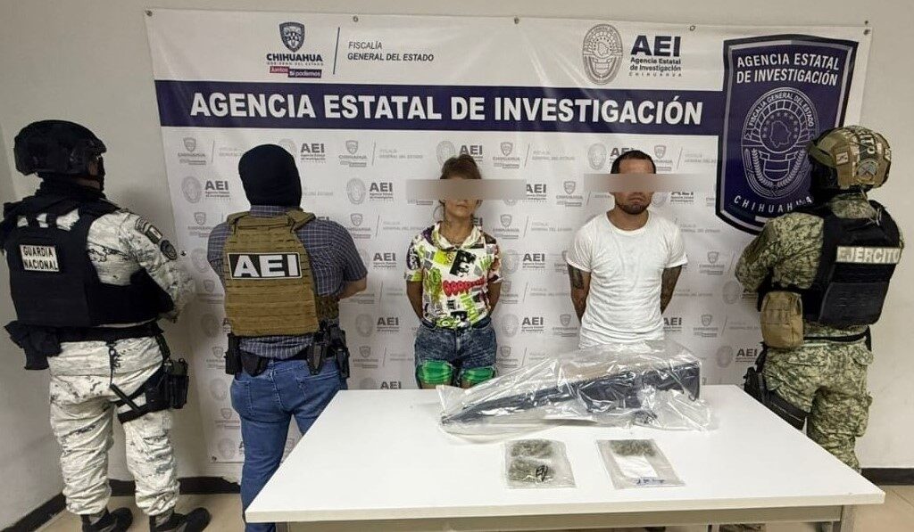Ciudad Juárez, Chih., a 25 de julio de 2025.- Elementos de la Agencia Estatal de Investigación, adscritos a la Fiscalía de Distrito Zona Norte, detuvieron en flagrancia a quienes se identificaron como Nubia Cristina A. S., de 31 años y Daniel R. M., de 39 años de edad, por los delitos de posesión ilegal de arma de fuego y delitos…