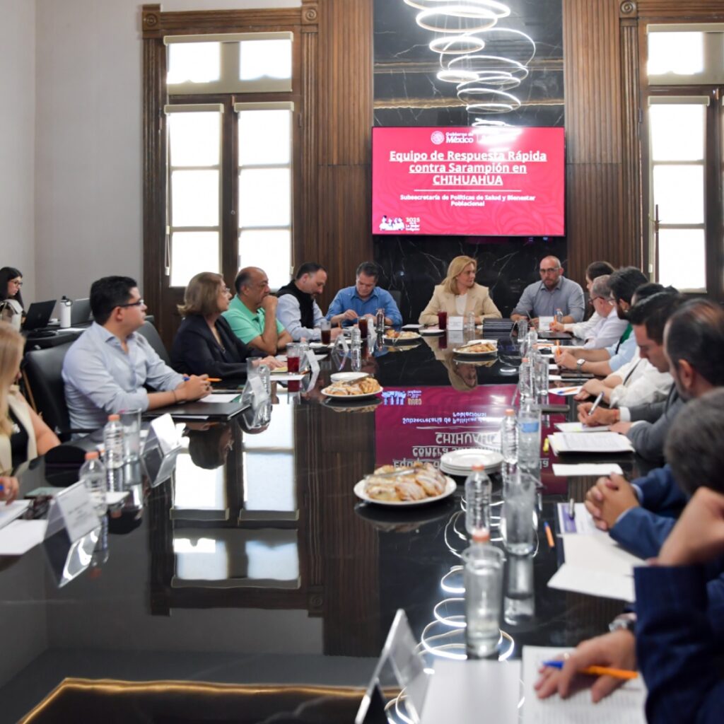 En una sesión de trabajo celebrada en Palacio de Gobierno, la gobernadora Maru Campos y el subsecretario de Políticas de Salud y Bienestar Poblacional del Gobierno Federal, Ramiro López Elizalde, dieron seguimiento a la estrategia conjunta de vacunación contra el sarampión que se implementa en el estado de Chihuahua. El encuentro se llevó a cabo con el objetivo de definir…