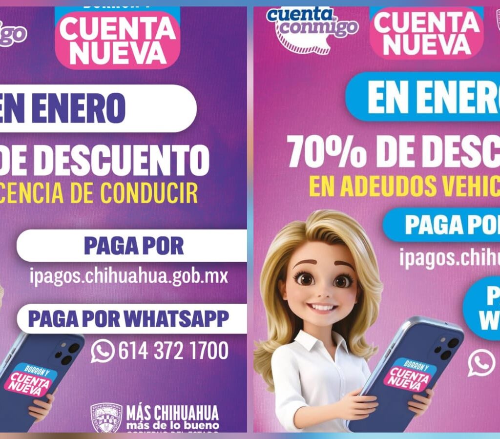 El Gobierno del Estado de Chihuahua invita a la población a aprovechar el último mes de vigencia del programa Borrón y Cuenta Nueva, que ofrece descuentos de hasta del 70 por ciento en diversos adeudos estatales. En el caso de la revalidación vehicular 2026 se cobrará a partir del mes de febrero, por lo que se exhorta a la ciudadanía…