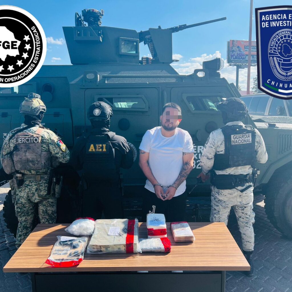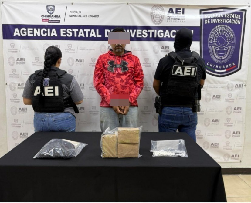 Ciudad Juárez, Chih., a 10 de octubre de 2025.- Elementos de la Agencia Estatal de Investigación, adscritos a la Fiscalía de Distrito Zona Norte, detuvieron a quien se identificó como Mario A. S., por delitos contra la salud, registrado en la colonia Riberas del Bravo, en Ciudad Juárez. La detención en flagrancia se realizó ayer jueves, en las calles Vela…