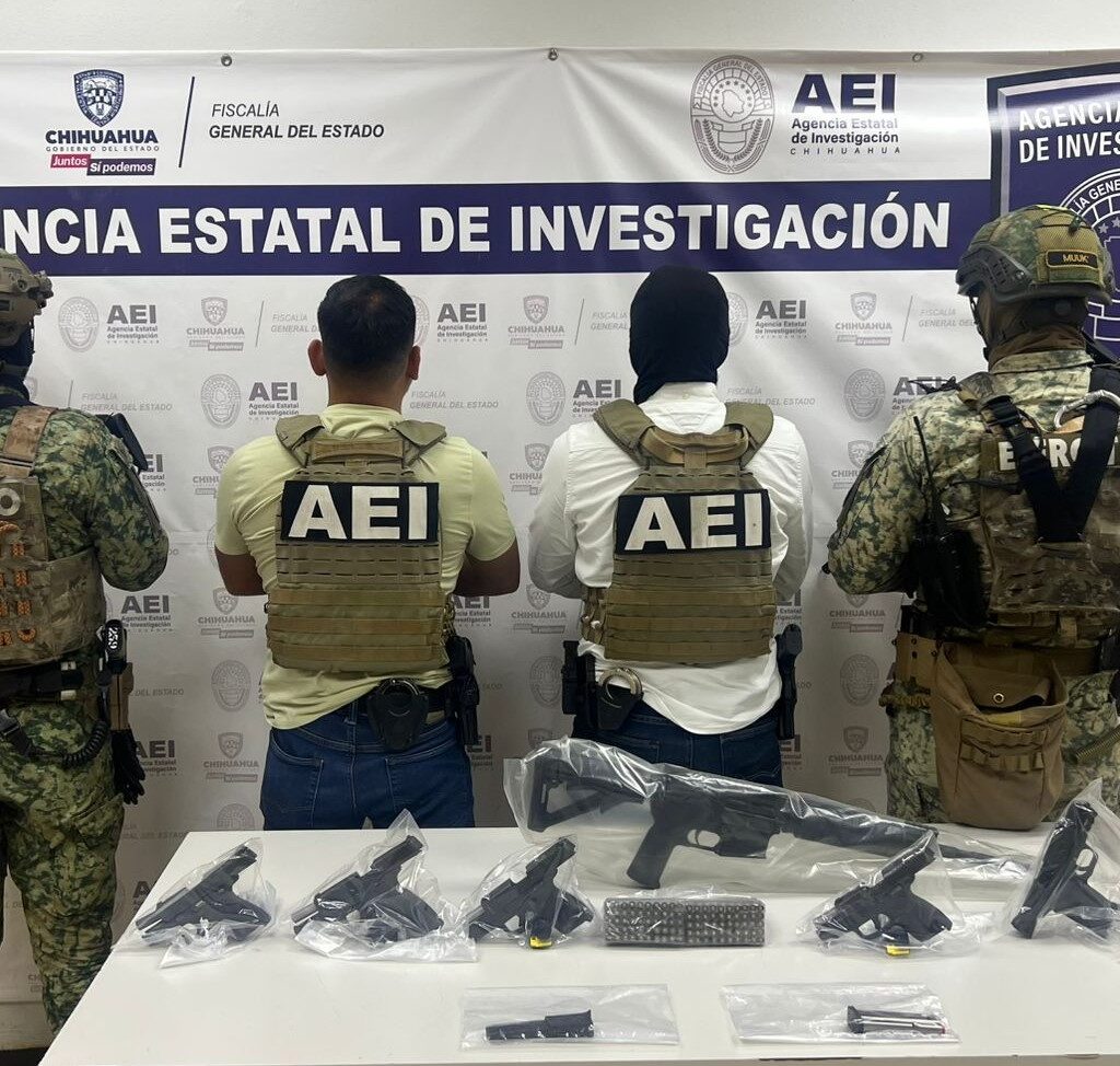 Ciudad Juárez, Chih., a 08 de octubre de 2025.- Elementos de la Agencia Estatal de Investigación (AEI), en coordinación con el Ejército Mexicano, detuvieron en flagrancia a quienes se identificaron como César Ramón E. E. y Gabriela E. E., por su probable responsabilidad en los delitos de posesión de vehículo con reporte de robo y desobediencia y resistencia de particulares,…