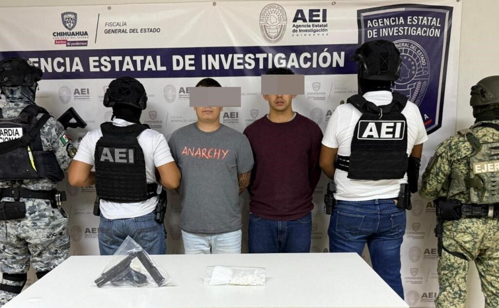 Ciudad Juárez, Chih., a 13 de septiembre de 2025.- Elementos de la Agencia Estatal de Investigación, adscritos a la Fiscalía de Distrito Zona Norte, con la colaboración del Ejército Mexicano y la Guardia Nacional, detuvieron a quienes se identificaron como David A. S., y Sebastián C. A., por delitos contra la salud y posesión ilegal de arma de fuego. La…