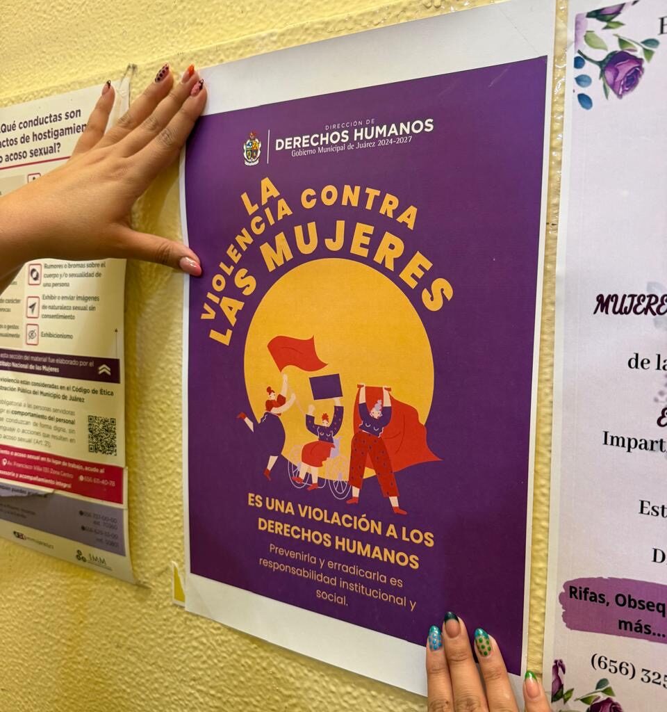 Martes 3 de Marzo del 2026.- En el marco del mes de la mujer, la Dirección de Derechos Humanos llevó a cabo la colocación de posters informativos en distintas áreas de Presidencia Municipal, con el objetivo de sensibilizar a los y las servidoras públicas, así como a la ciudadanía en general, sobre la importancia de esta fecha. “El material difundido…